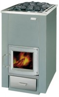 Чугунная дверца со стеклом и стойкая верхняя плита топки с максимальной толщиной в 10 мм дают гарантию долговечности. Каменка имеет вместительный отсек для нагревательных камней. Модель также оборудована регулируемыми ножками, что обеспечивает ее ровную установку или помогает настроить высоту каменки под высоту отверстия для дымохода. Каменка может оснащаться баком для воды. Модель Harvia 20 Pro изготавливается также с облицовкой из нержавеющей стали (Harvia 20 Pro S). Рекомендуемый объем парильни для этой каменки должен быть в пределах от 8 до 20 м3, максимальная масса камней – 50 кг. |