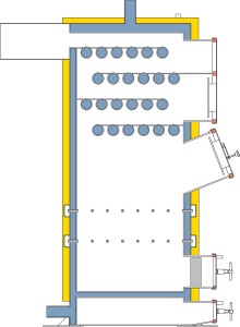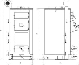 Конструктивно котлы представляют собой сборно-сварной корпус и камеру горения. Над топкой расположена конвекционная часть, которая представляет собой двухходовой (для мощностей 10-44 кВт), трехходовой (для мощностей 50-65 кВт) или четырехходовой (для мощностей 75-120 кВт) теплообменник.