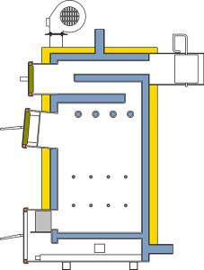 Каждая модель котла вне зависимости от мощности имеет два ревизионных люка, один – для очистки камеры от золы, другой – для выхода дыма и панели теплообменника;
