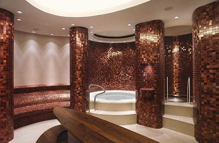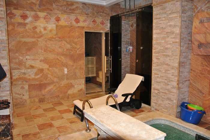 Часто, при строительстве сауны, в таких парных устанавливается оборудование необычного дизайна (отделанное натуральным камнем, со светящимся ограждением, встроенным в печь освещением, и т.д.) или имеющее расширенные функции (например, имеют встроенный или установленный отдельно мощный парогенератор, совмещённый с печью на одной компьютерной панели управления).