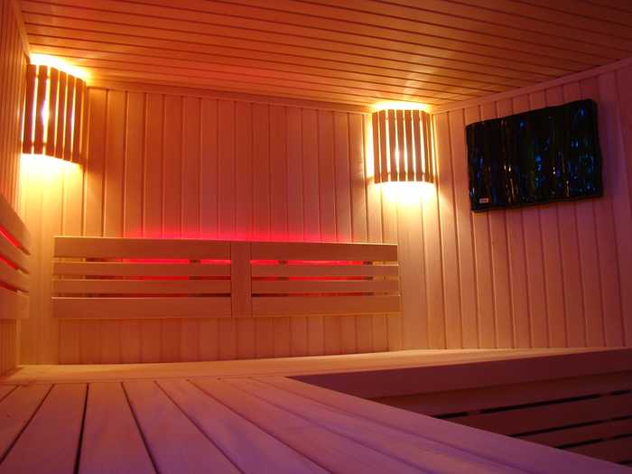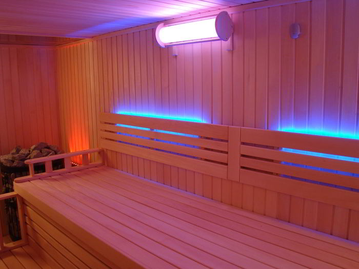 Парная может быть оснащена системой автоматической ароматизации, которая по заданной программе подаёт нужный аромат в сауну, системой автоматического подлива воды на печь. Как правило, такие парные имеют оригинальное освещение: например, цветотерапию, световое освещение за подспинниками на стене, оптоволоконное освещение, специально разработанное для эксплуатации при высоких температурах и влажности. Световолкна оптоволоконной системы могут быть установлены в сауне или парной в любом месте в соответствии с потребностью: на потолке, в том числе непосредственно над нагревателем, за спинками, под полатями, между полатей и т.д. Так же в комплект входит устройство с одной линзой в виде огранённого кристалла, который обычно помещают над печью для подсветки пара, что смотрится очень эффектно. Светильники в парной могут иметь форму факела, цилиндра, или быть разработаны специально для Вашей парной.