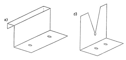 Для возможности восприятия температурных деформаций медной кровли кромка одного из стыкуемых листов выполняется наклонной с обеспечением зазора не менее 3 мм (рисунок 5). Для крепления картин кровли к основанию применяют кляммеры (рисунок 6), которые закрепляют гвоздями к основанию и вводятся в стоячие фальцы (рисунок 4). На основных поверхностях кровли рекомендуемое количество кляммеров - 4 шт/м2 с шагом 400 - 500 мм. Для участков кровель, расположенных по периметру здания, количество кляммеров увеличивают до 5 шт/м2 и уменьшают шаг до 350 мм. Установка может осуществляться вручную специальными кровельными рамками или механизированно-фальцезакаточной машиной.