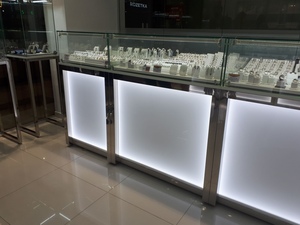 Для ювелирных магазинов мы изготавливаем мебель из нержавеющей стали с зеркальной поверхностью. Такая поверхность подчеркивает блес ювелирных украшений. Также хорошо гармонирует с подсветкой и стеклом. Все сварочные швы идеально зачищены и отполированы.